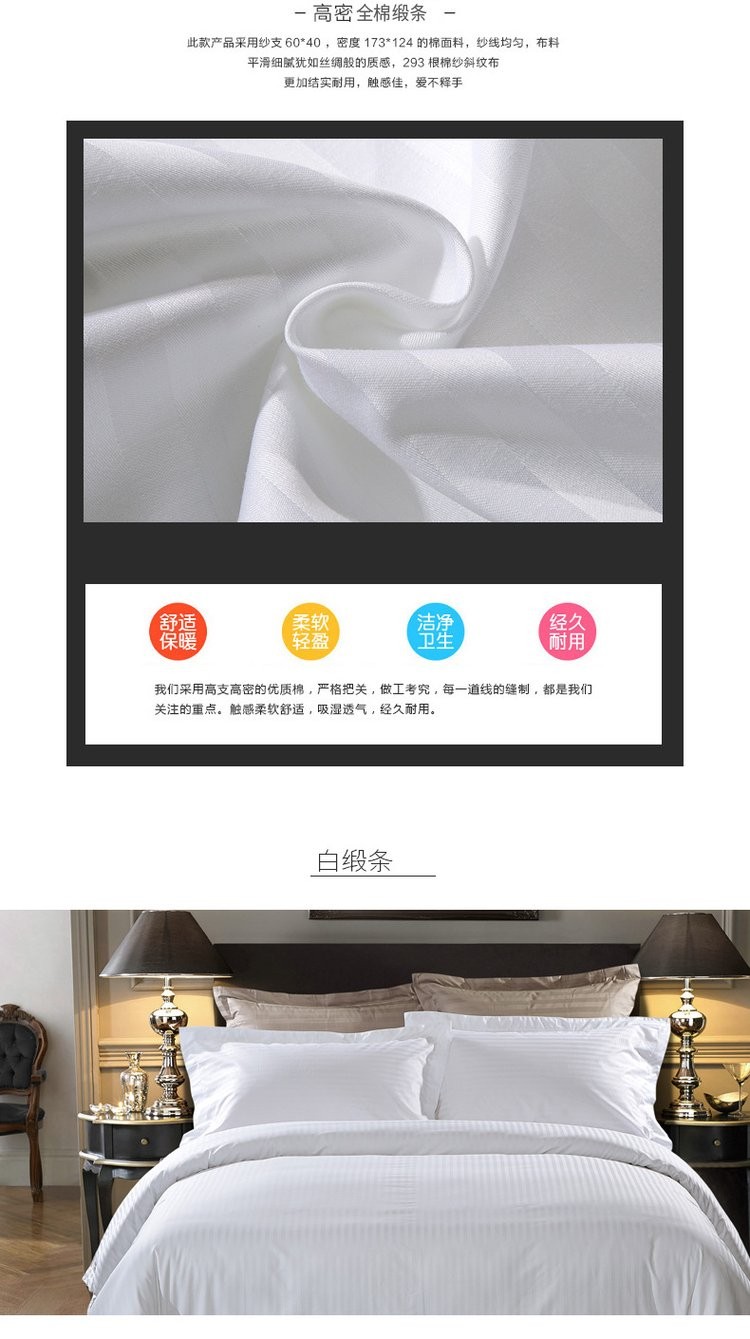 描述:本公司为客户提供各种酒店布草,多种款式、支持来图定制,均是全工艺一手品牌面料,细致考究的工艺,富裕每一个床品细腻如绸的柔软触感。